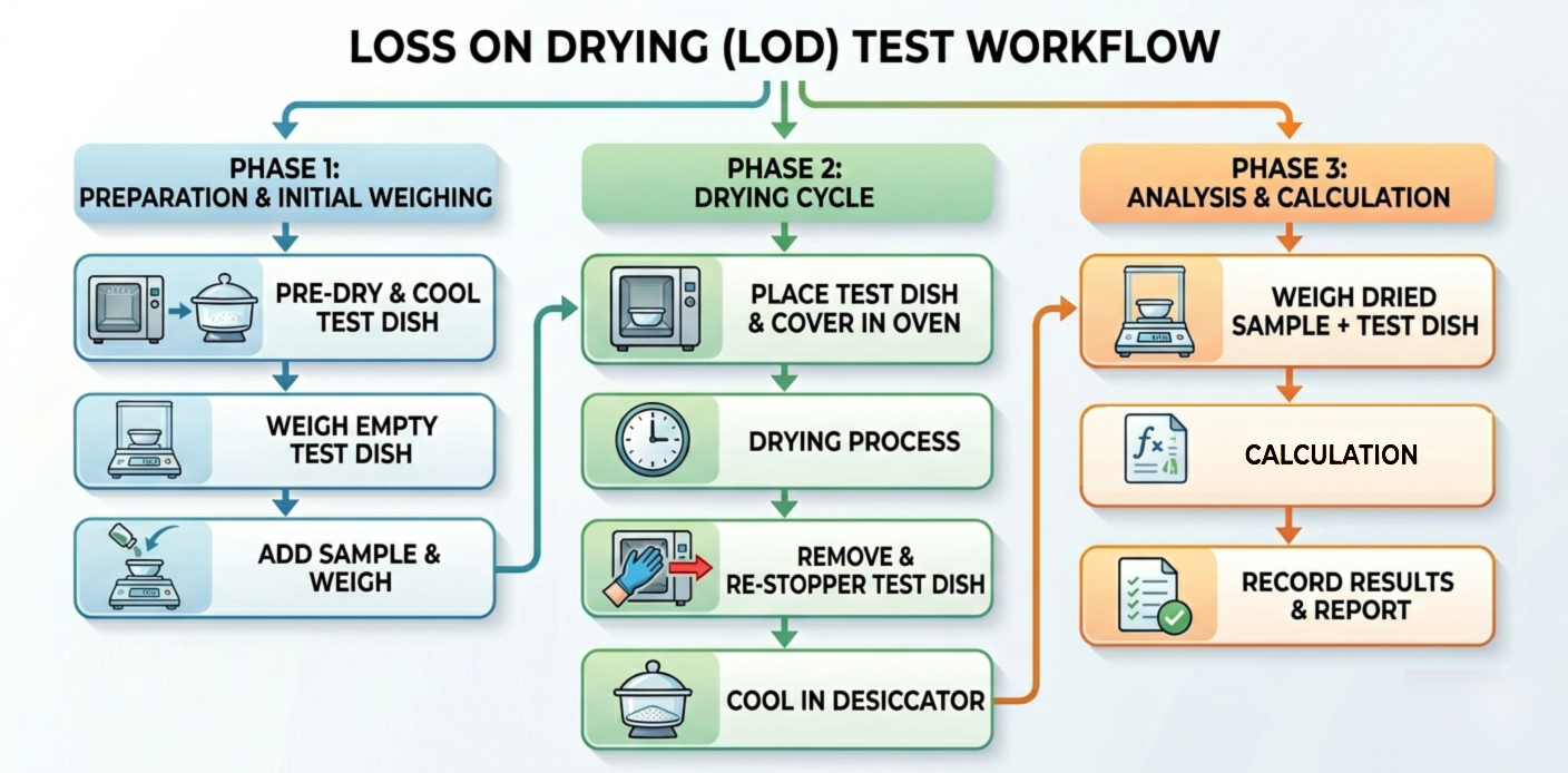 The principle is simple: Thermogravimetric analysis. You measure the mass of a sample before and after a drying process; the difference is the " Loss on Drying," typically expressed as a percentage.