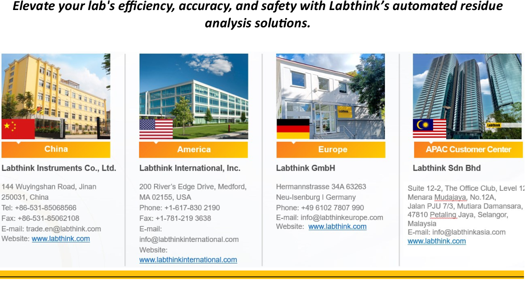 Embrace the new way in comprehensive testing for chemical impurity residues. Labthink introduces the C840, C850, and C860 Integrated Testing Systems designed to meet international standards and provide accurate and effective testing solutions for Food Contact Materials (FCMs), Pharmaceutical, Fine Chemical industries, etc.